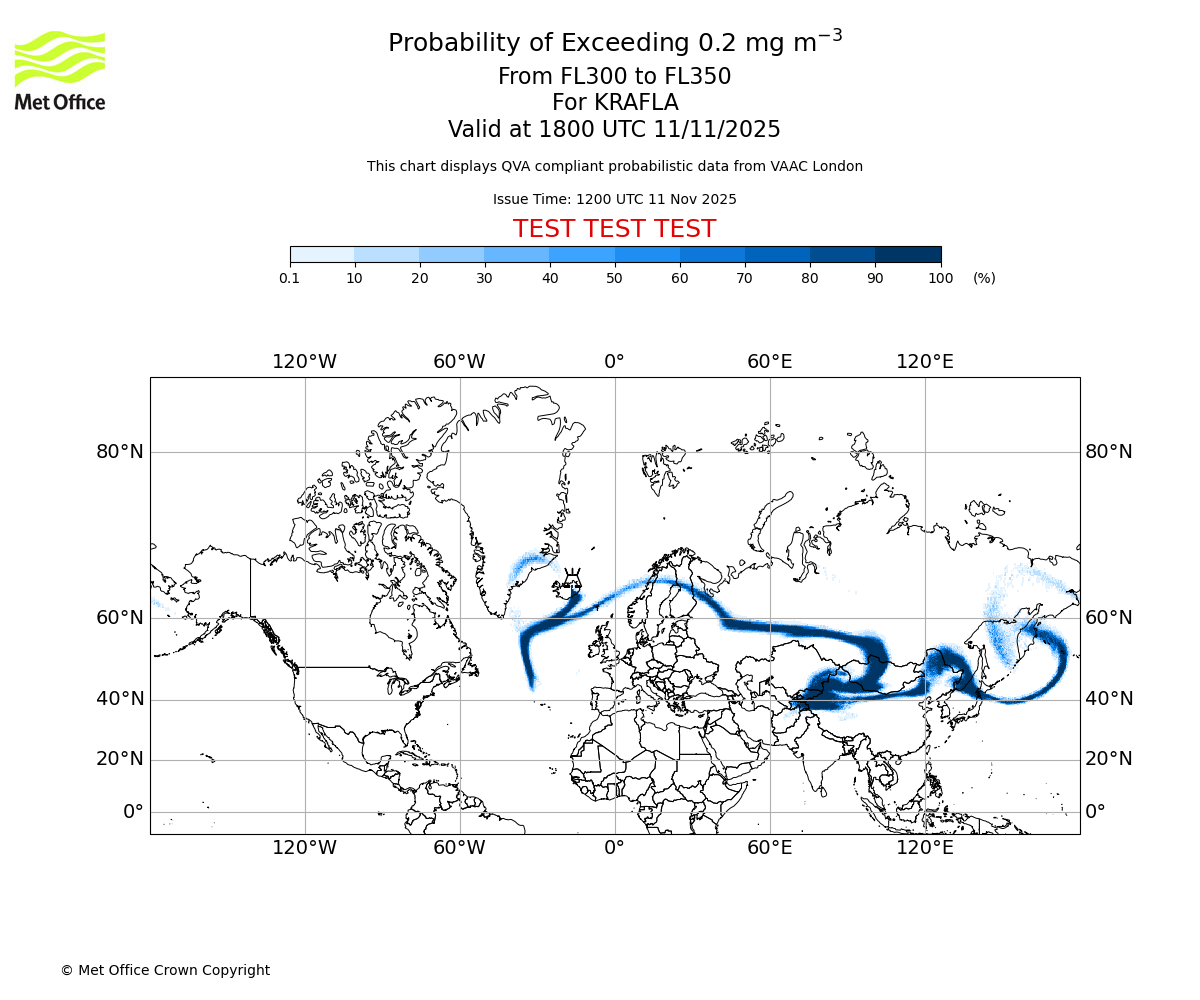 In accordance with ICAO Annex 3, Amendment 82 VAAC London will provide operational QVA forecasts from 27 November 2025 and these will be made available via a VAAC London QVA API information service. These charts are currently provided for test and evaluation purposes (not for operational use) until the introduction of the operational service.