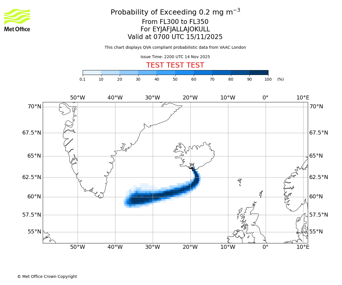 In accordance with ICAO Annex 3, Amendment 82 VAAC London will provide operational QVA forecasts from 27 November 2025 and these will be made available via a VAAC London QVA API information service. These charts are currently provided for test and evaluation purposes (not for operational use) until the introduction of the operational service.