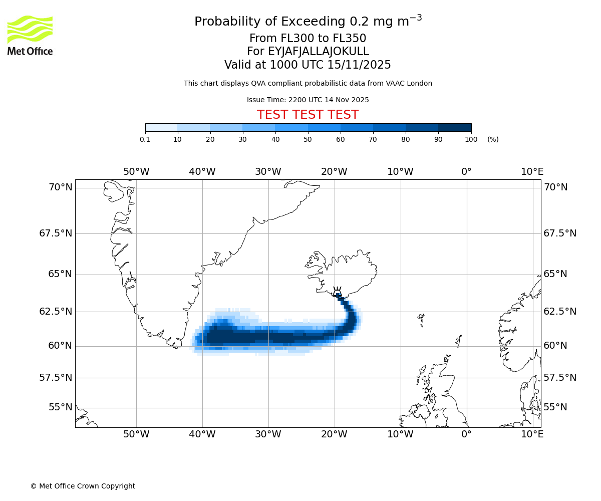 In accordance with ICAO Annex 3, Amendment 82 VAAC London will provide operational QVA forecasts from 27 November 2025 and these will be made available via a VAAC London QVA API information service. These charts are currently provided for test and evaluation purposes (not for operational use) until the introduction of the operational service.