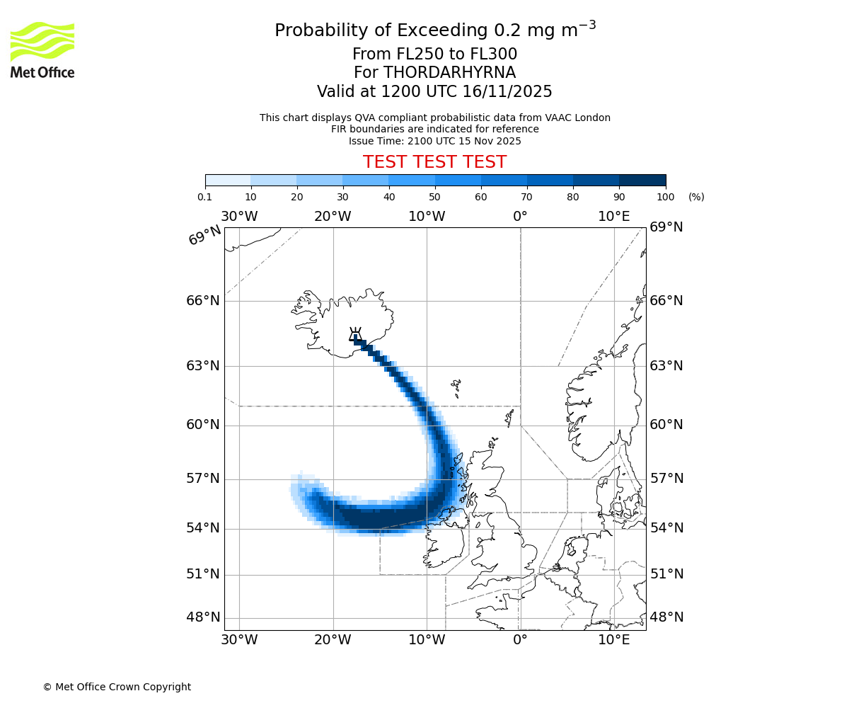 In accordance with ICAO Annex 3, Amendment 82 VAAC London will provide operational QVA forecasts from 27 November 2025 and these will be made available via a VAAC London QVA API information service. These charts are currently provided for test and evaluation purposes (not for operational use) until the introduction of the operational service.