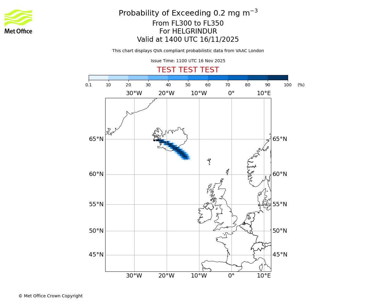 In accordance with ICAO Annex 3, Amendment 82 VAAC London will provide operational QVA forecasts from 27 November 2025 and these will be made available via a VAAC London QVA API information service. These charts are currently provided for test and evaluation purposes (not for operational use) until the introduction of the operational service.