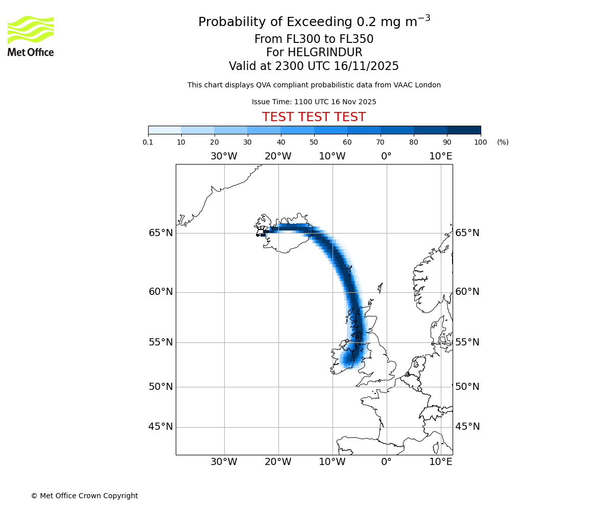 In accordance with ICAO Annex 3, Amendment 82 VAAC London will provide operational QVA forecasts from 27 November 2025 and these will be made available via a VAAC London QVA API information service. These charts are currently provided for test and evaluation purposes (not for operational use) until the introduction of the operational service.