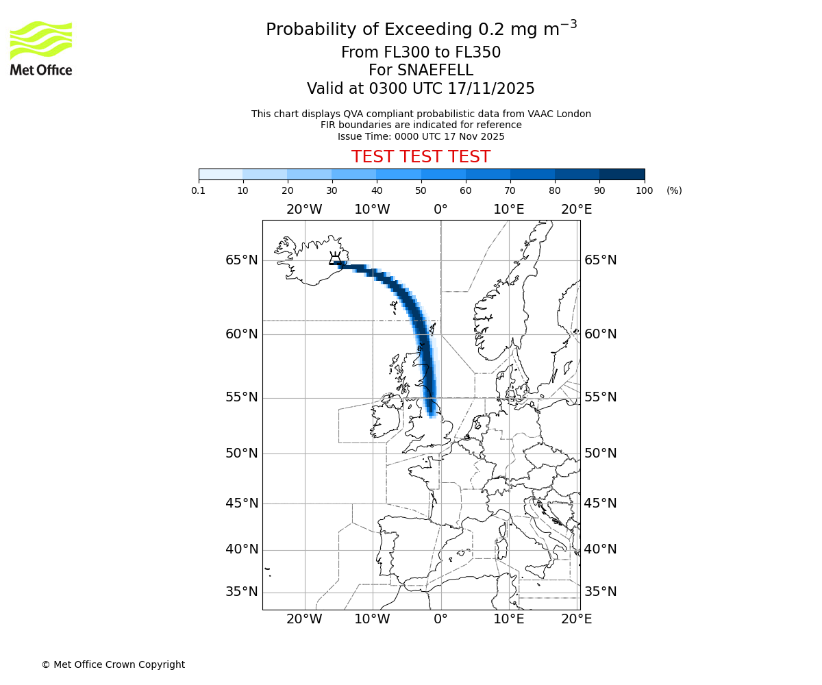 In accordance with ICAO Annex 3, Amendment 82 VAAC London will provide operational QVA forecasts from 27 November 2025 and these will be made available via a VAAC London QVA API information service. These charts are currently provided for test and evaluation purposes (not for operational use) until the introduction of the operational service.
