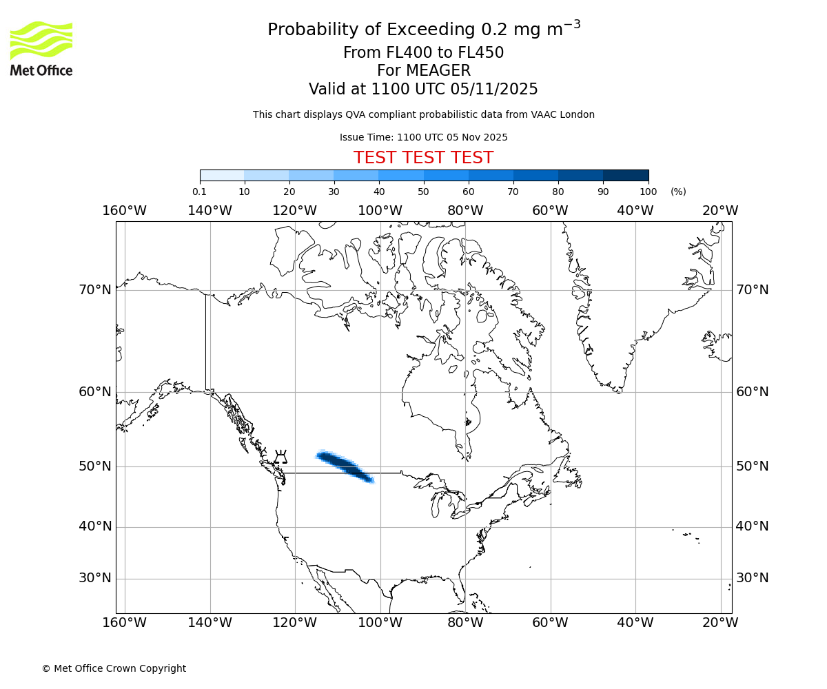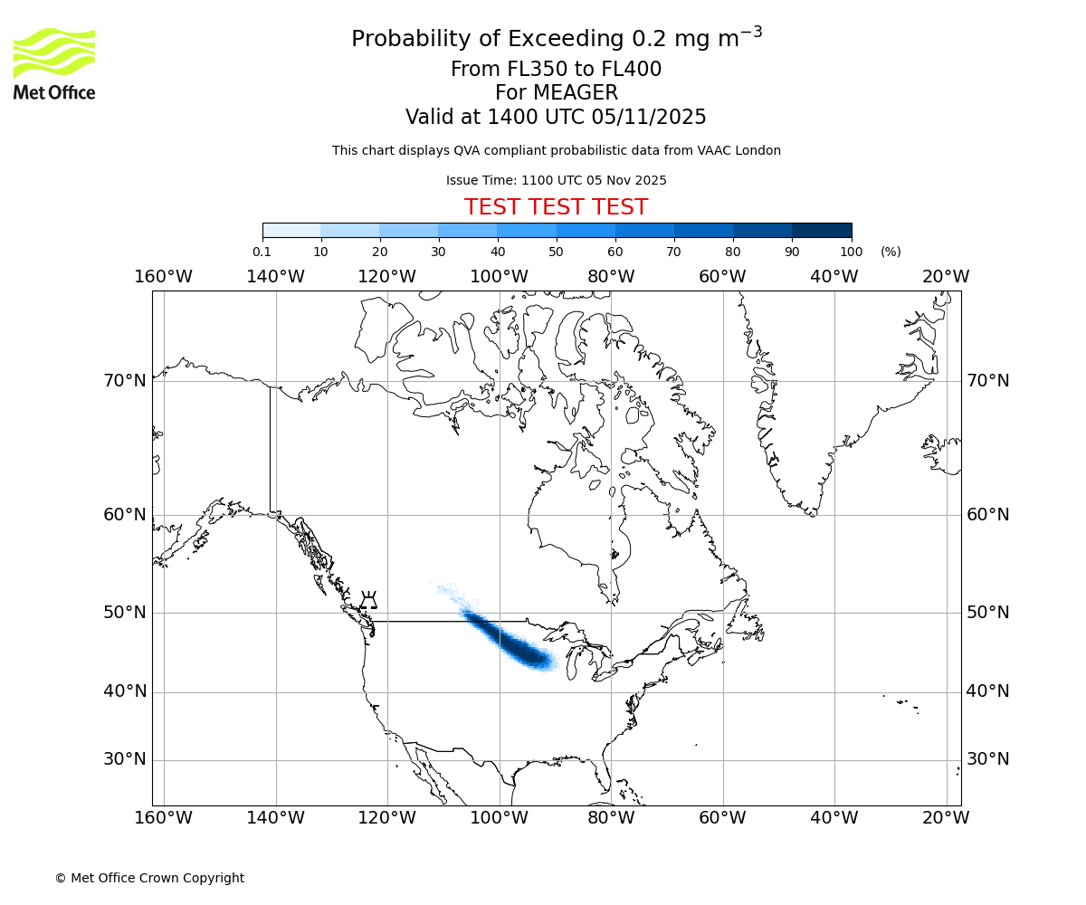 In accordance with ICAO Annex 3, Amendment 82 VAAC London will provide operational QVA forecasts from 27 November 2025 and these will be made available via a VAAC London QVA API information service. These charts are currently provided for test and evaluation purposes (not for operational use) until the introduction of the operational service.