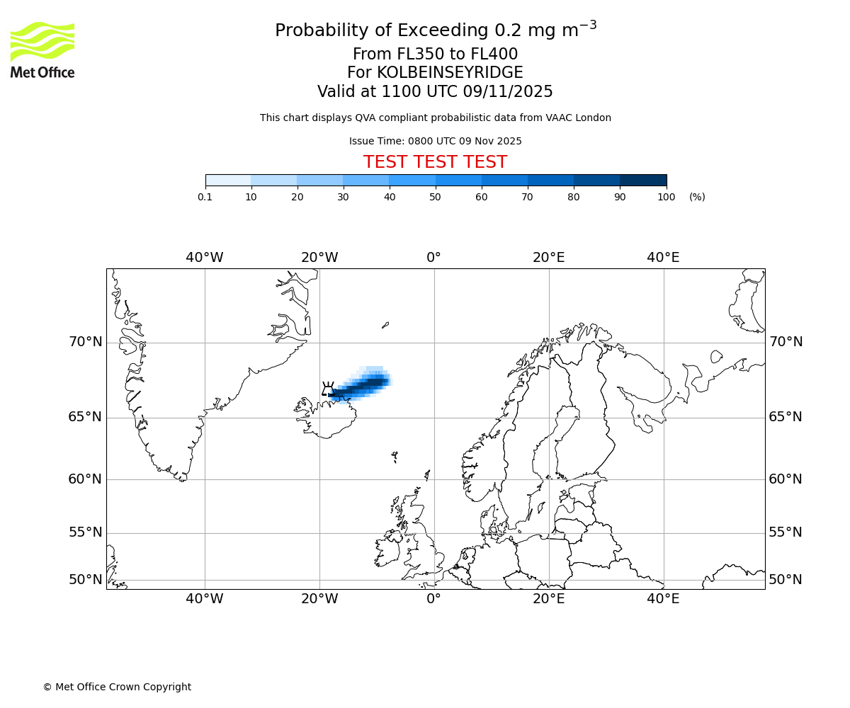 In accordance with ICAO Annex 3, Amendment 82 VAAC London will provide operational QVA forecasts from 27 November 2025 and these will be made available via a VAAC London QVA API information service. These charts are currently provided for test and evaluation purposes (not for operational use) until the introduction of the operational service.