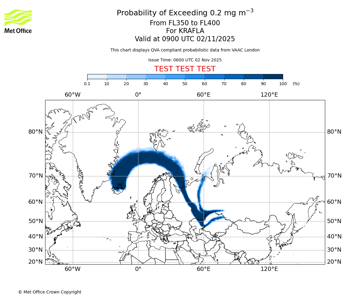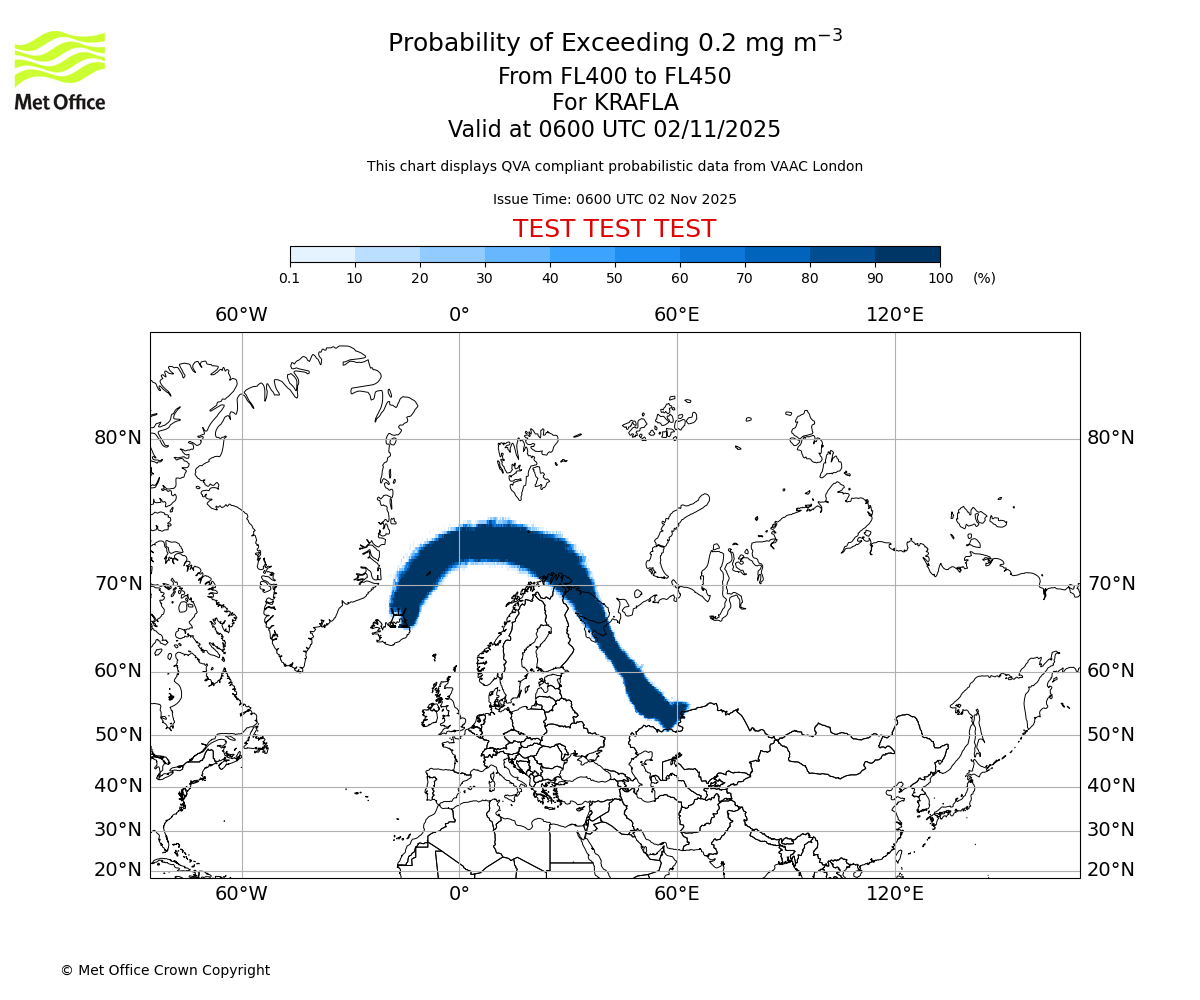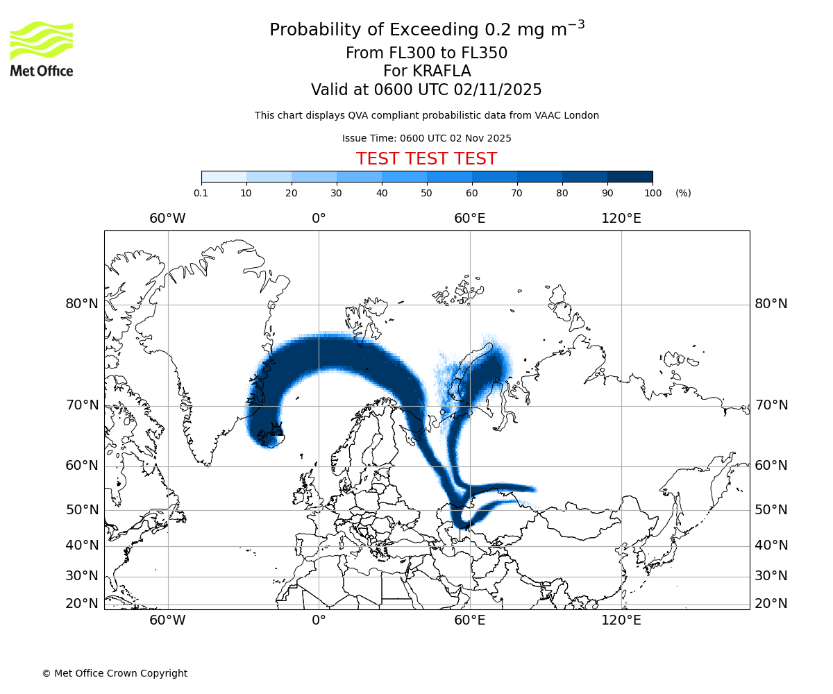 In accordance with ICAO Annex 3, Amendment 82 VAAC London will provide operational QVA forecasts from 27 November 2025 and these will be made available via a VAAC London QVA API information service. These charts are currently provided for test and evaluation purposes (not for operational use) until the introduction of the operational service.