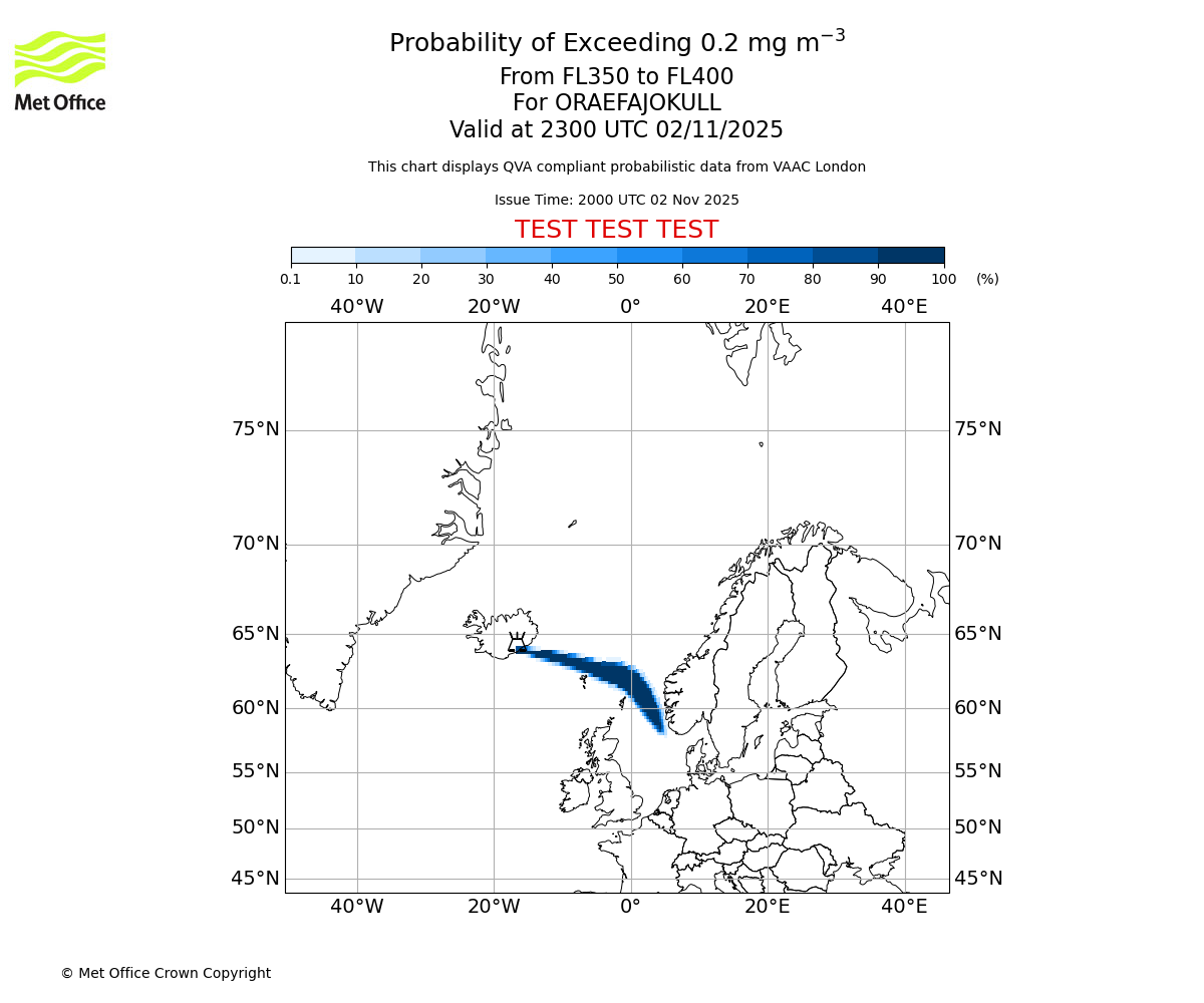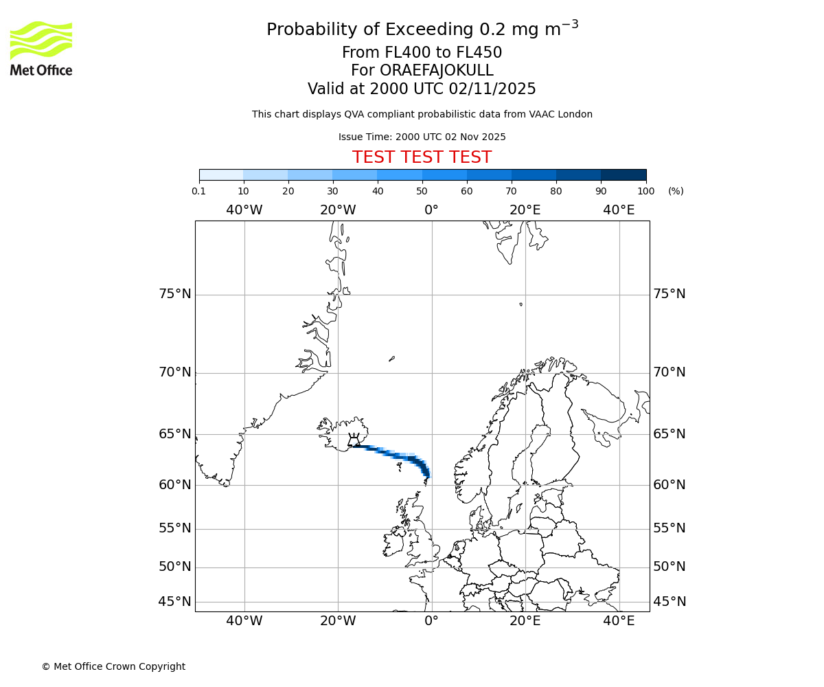 In accordance with ICAO Annex 3, Amendment 82 VAAC London will provide operational QVA forecasts from 27 November 2025 and these will be made available via a VAAC London QVA API information service. These charts are currently provided for test and evaluation purposes (not for operational use) until the introduction of the operational service.