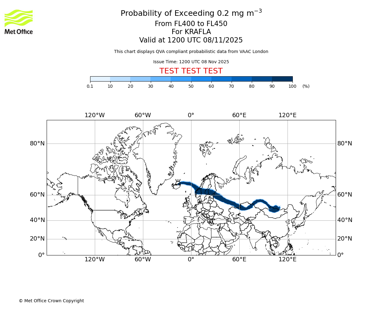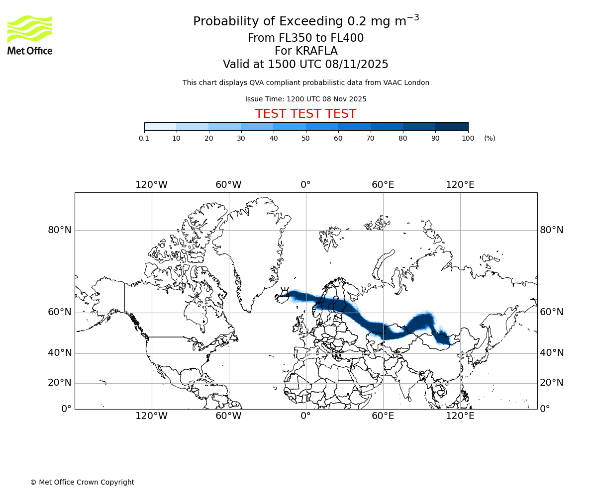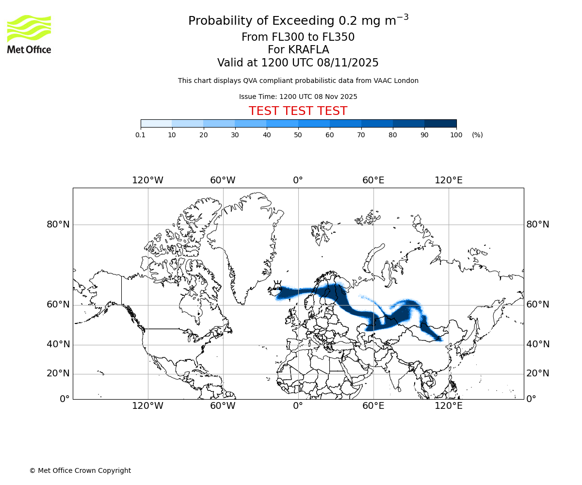 In accordance with ICAO Annex 3, Amendment 82 VAAC London will provide operational QVA forecasts from 27 November 2025 and these will be made available via a VAAC London QVA API information service. These charts are currently provided for test and evaluation purposes (not for operational use) until the introduction of the operational service.