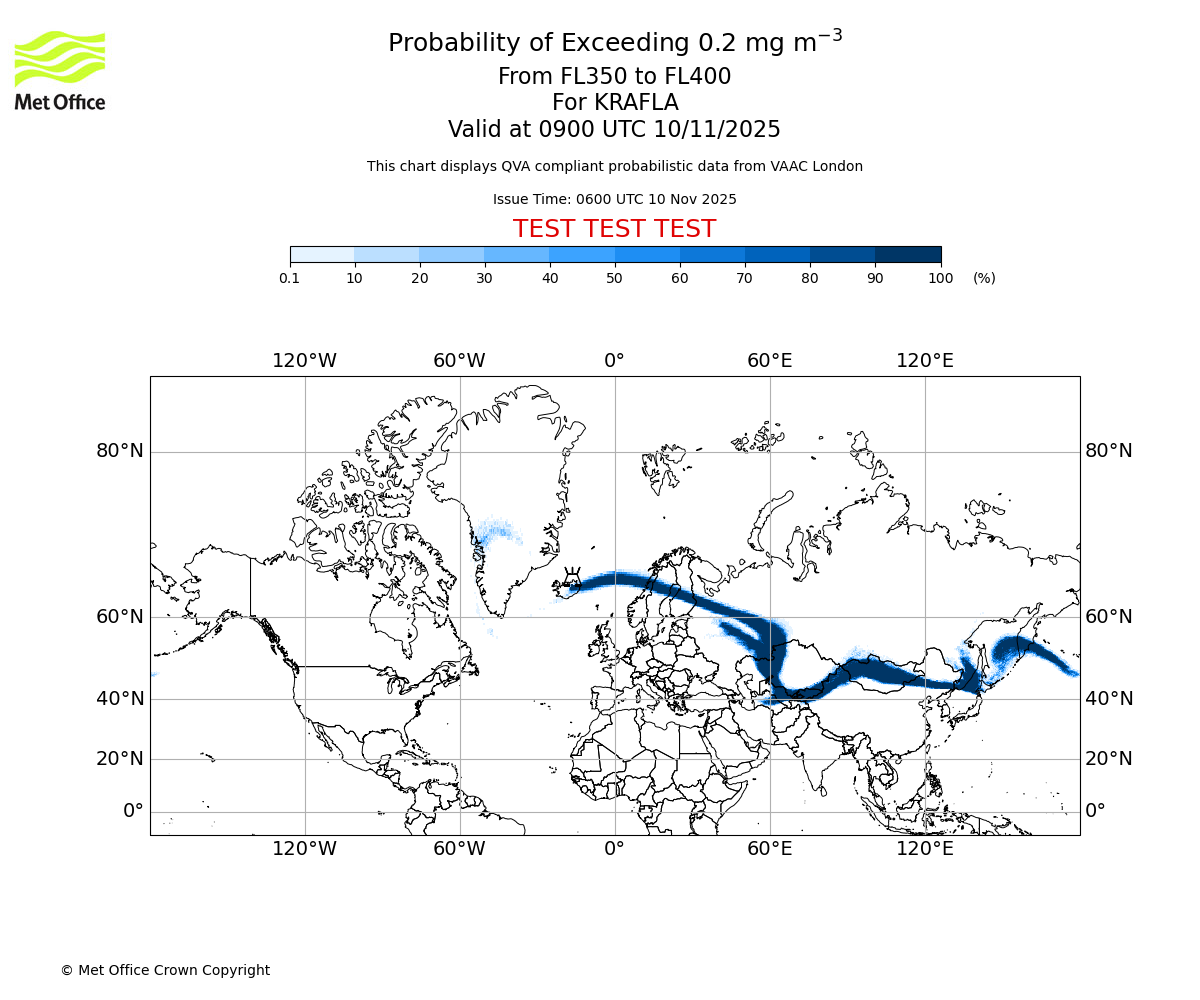 In accordance with ICAO Annex 3, Amendment 82 VAAC London will provide operational QVA forecasts from 27 November 2025 and these will be made available via a VAAC London QVA API information service. These charts are currently provided for test and evaluation purposes (not for operational use) until the introduction of the operational service.