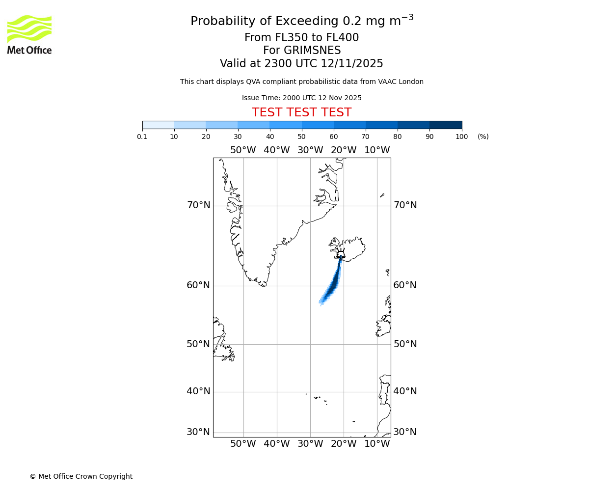In accordance with ICAO Annex 3, Amendment 82 VAAC London will provide operational QVA forecasts from 27 November 2025 and these will be made available via a VAAC London QVA API information service. These charts are currently provided for test and evaluation purposes (not for operational use) until the introduction of the operational service.