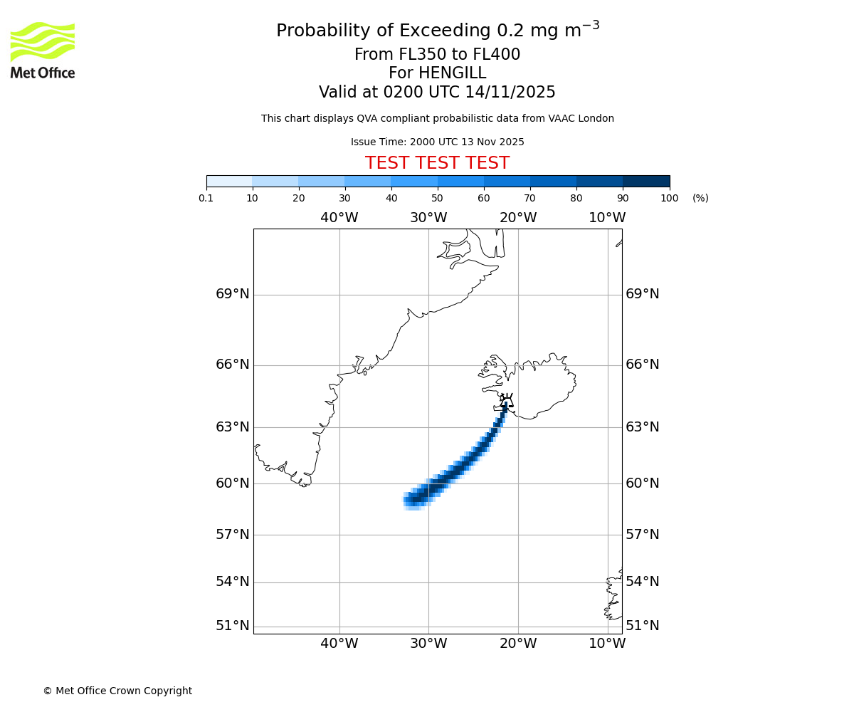 In accordance with ICAO Annex 3, Amendment 82 VAAC London will provide operational QVA forecasts from 27 November 2025 and these will be made available via a VAAC London QVA API information service. These charts are currently provided for test and evaluation purposes (not for operational use) until the introduction of the operational service.