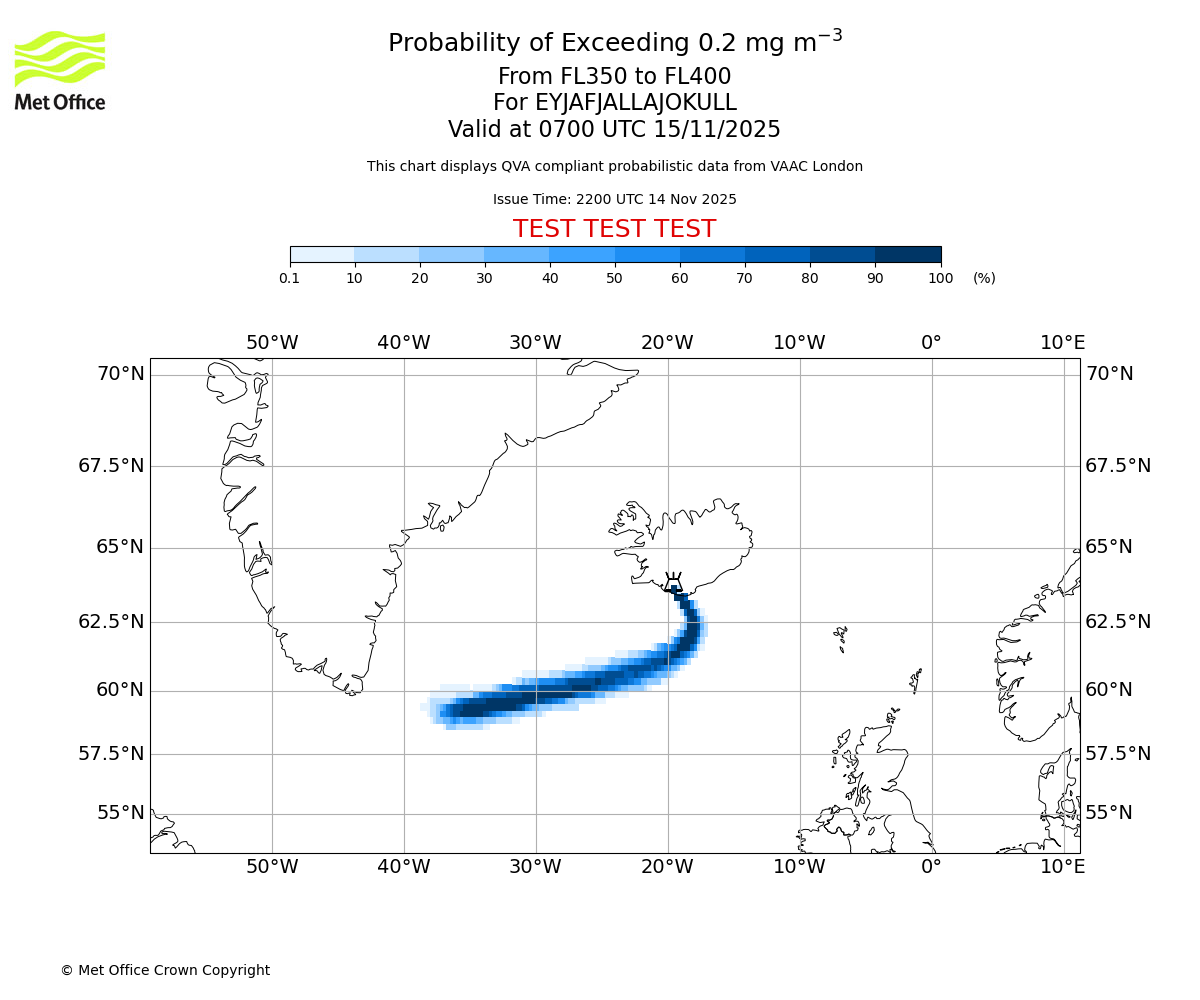 In accordance with ICAO Annex 3, Amendment 82 VAAC London will provide operational QVA forecasts from 27 November 2025 and these will be made available via a VAAC London QVA API information service. These charts are currently provided for test and evaluation purposes (not for operational use) until the introduction of the operational service.