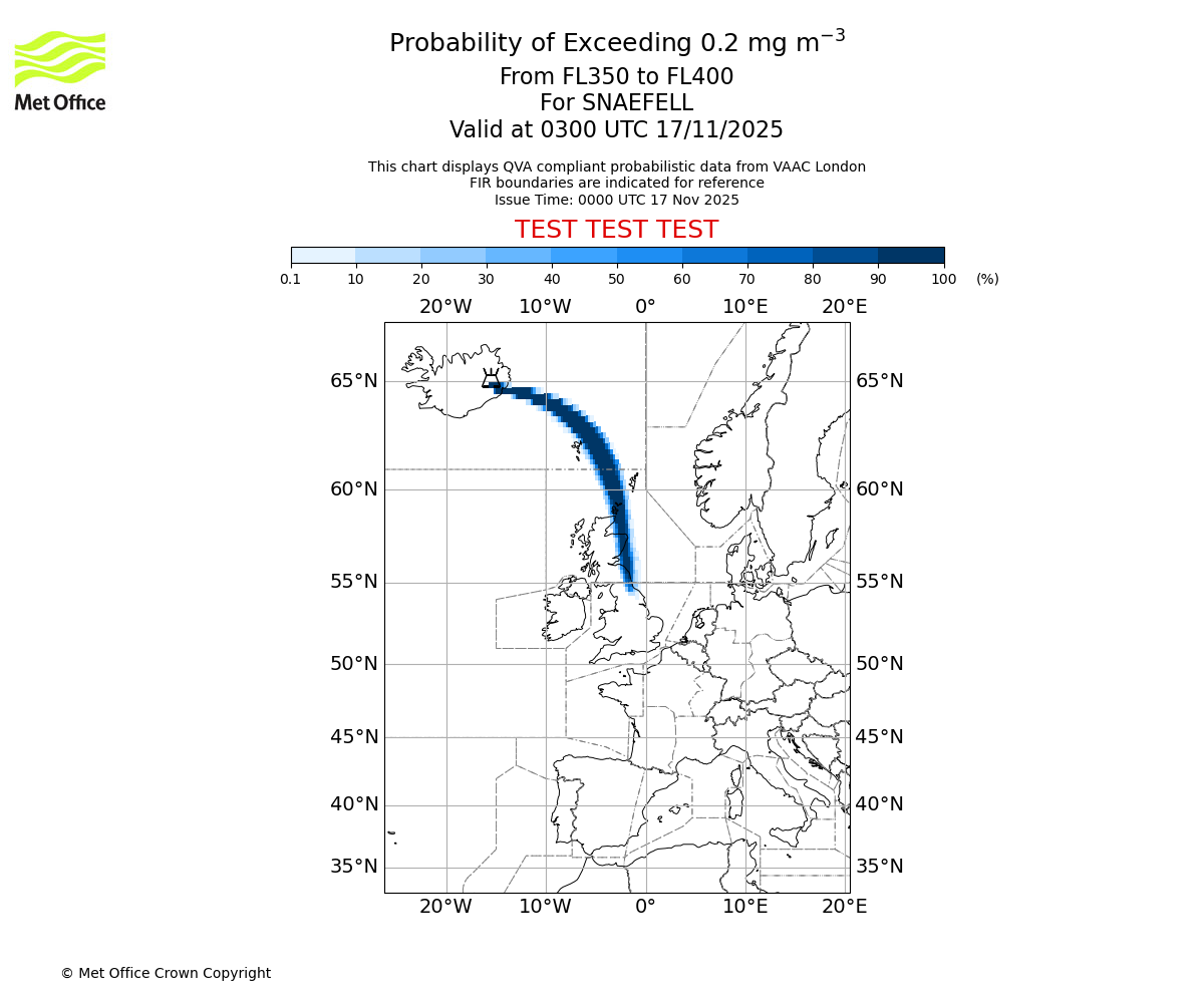 In accordance with ICAO Annex 3, Amendment 82 VAAC London will provide operational QVA forecasts from 27 November 2025 and these will be made available via a VAAC London QVA API information service. These charts are currently provided for test and evaluation purposes (not for operational use) until the introduction of the operational service.