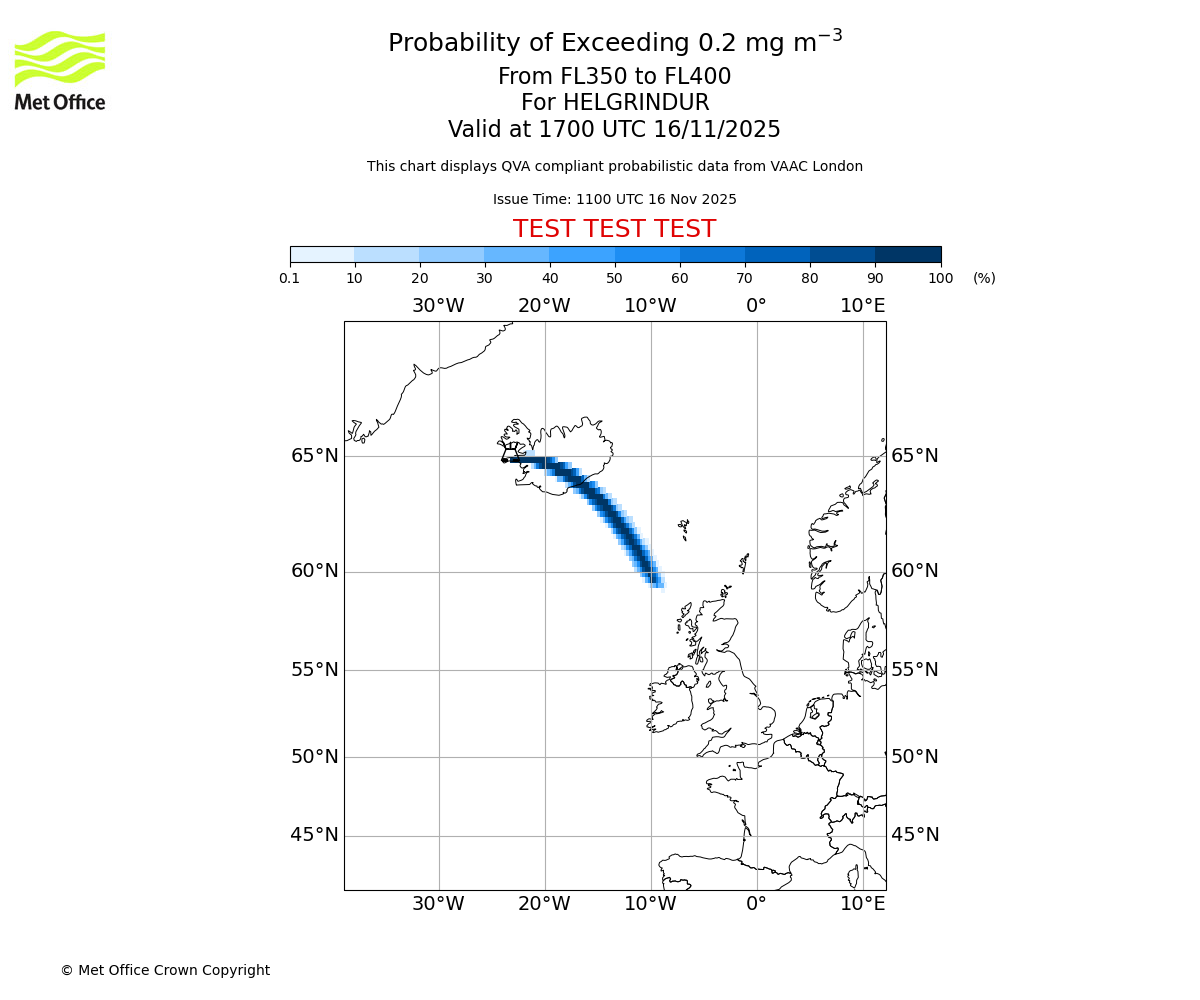 In accordance with ICAO Annex 3, Amendment 82 VAAC London will provide operational QVA forecasts from 27 November 2025 and these will be made available via a VAAC London QVA API information service. These charts are currently provided for test and evaluation purposes (not for operational use) until the introduction of the operational service.
