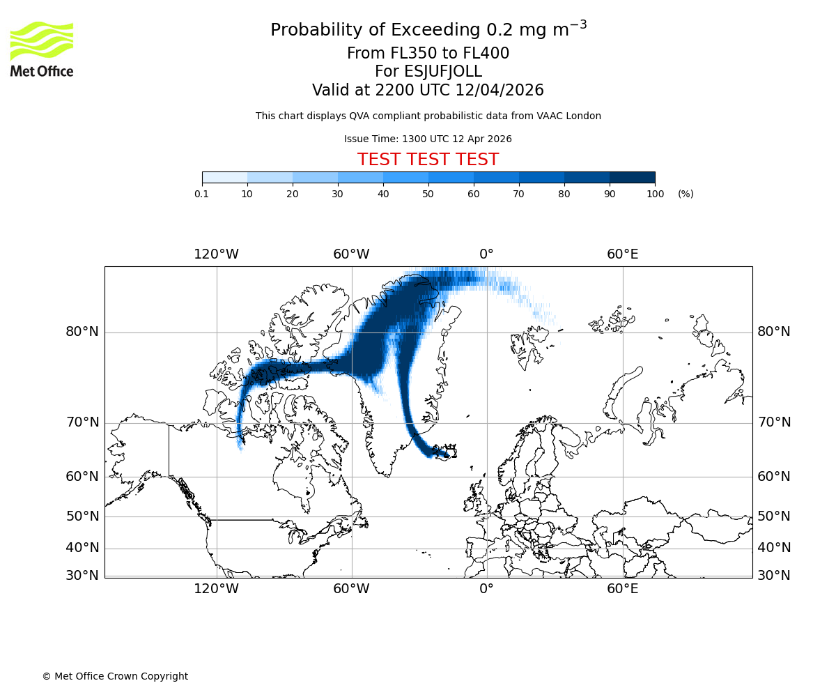 Quantitative Volcanic Ash charts (QVA) are produced in accordance with International Civil Aviation Organization (ICAO) Annex 3 requirements and are provided as well as the London Volcanic Ash Advisory Graphics (VAG) and Advisories (VAA). The lowest QVA threshold (0.2 mg/m³) matches to the areas depicted in the VAA and VAG. Both expected ash concentration and probabilistic forecast information is provided in the chart viewer below for eruptions occurring in the London Volcanic Ash Advisory Centre (VAAC) area of responsibility.