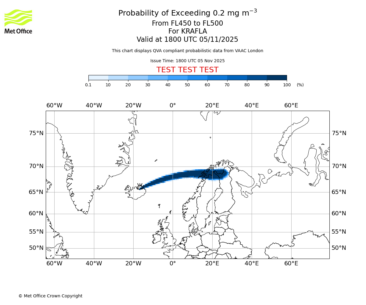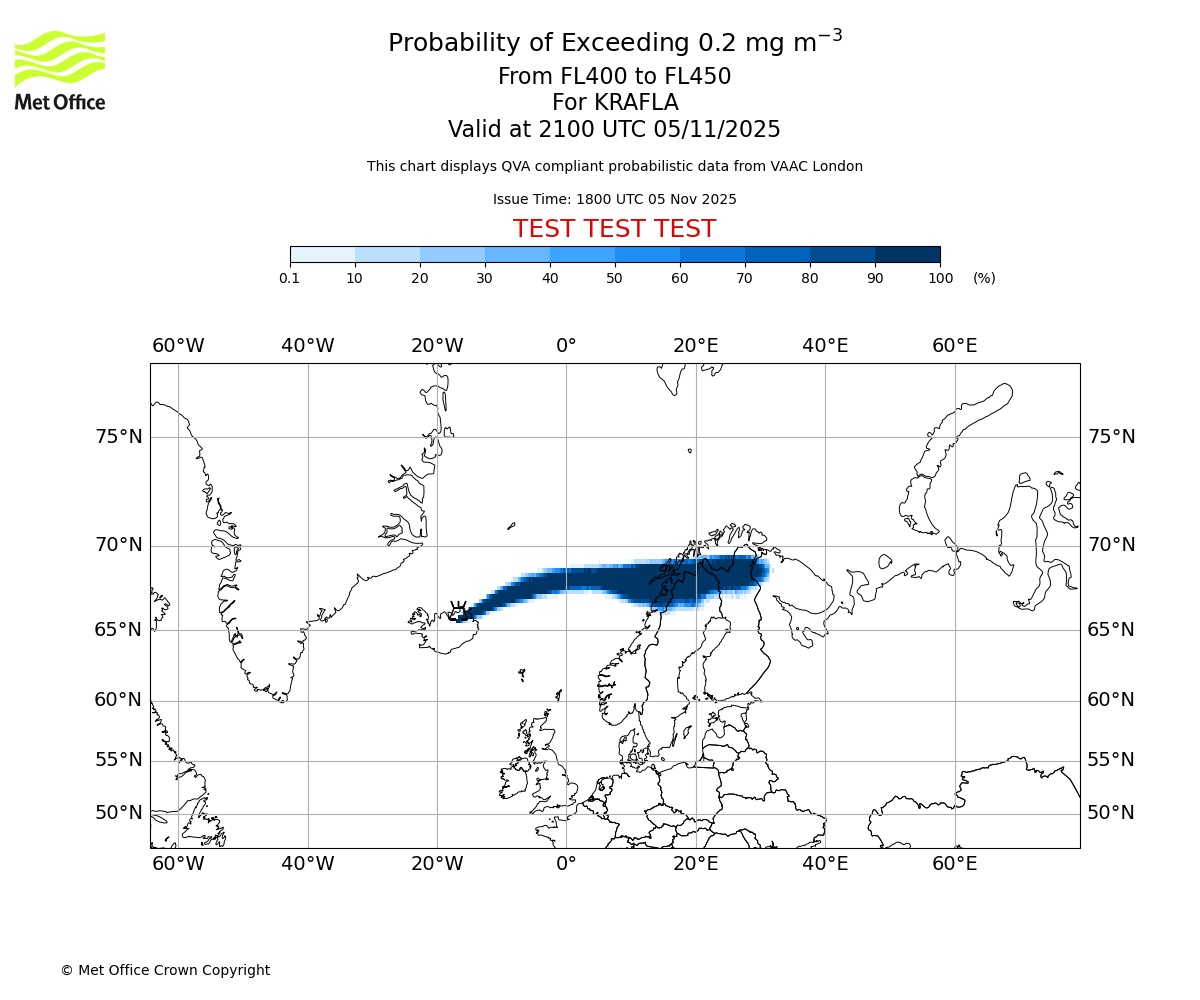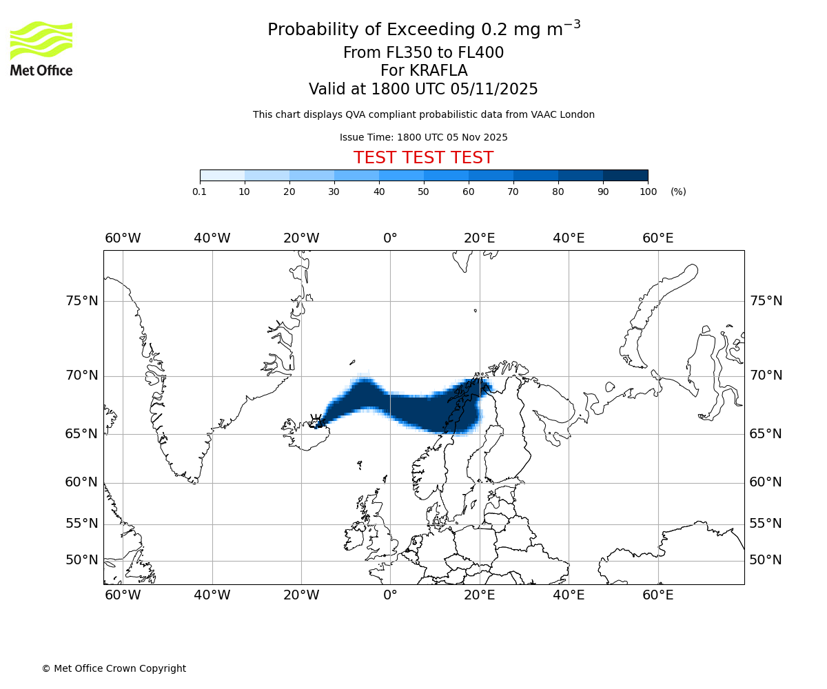 In accordance with ICAO Annex 3, Amendment 82 VAAC London will provide operational QVA forecasts from 27 November 2025 and these will be made available via a VAAC London QVA API information service. These charts are currently provided for test and evaluation purposes (not for operational use) until the introduction of the operational service.