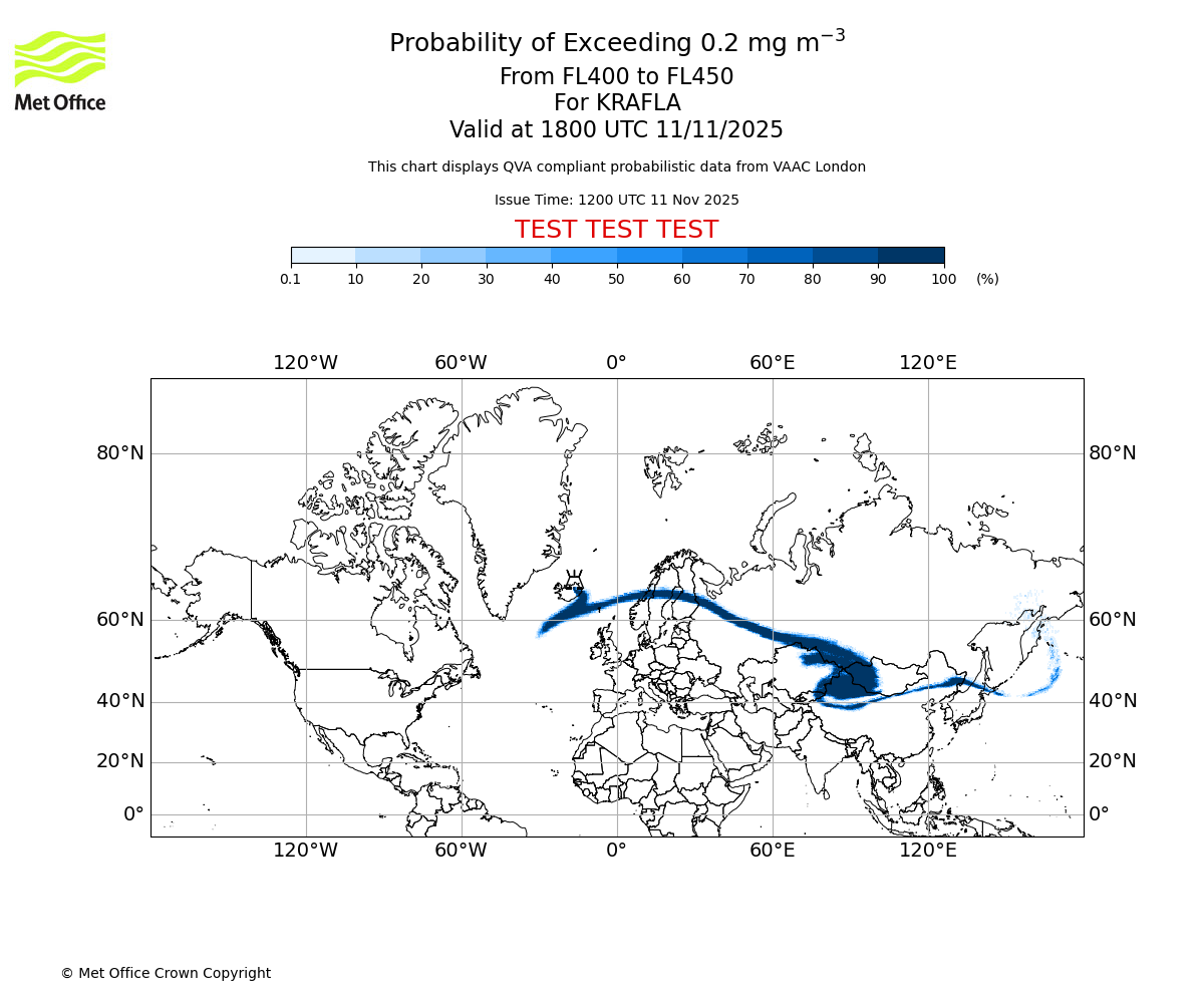 In accordance with ICAO Annex 3, Amendment 82 VAAC London will provide operational QVA forecasts from 27 November 2025 and these will be made available via a VAAC London QVA API information service. These charts are currently provided for test and evaluation purposes (not for operational use) until the introduction of the operational service.