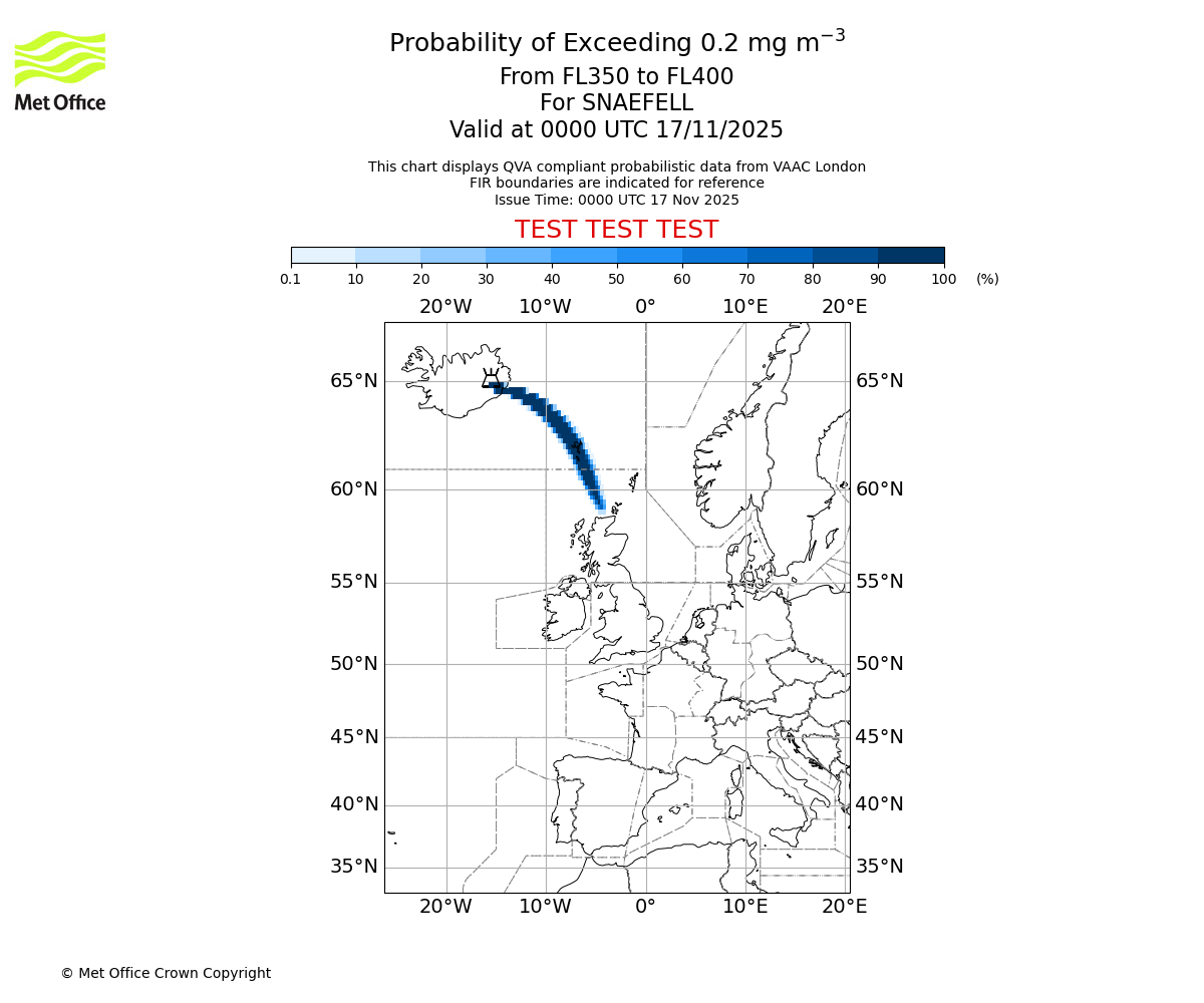 In accordance with ICAO Annex 3, Amendment 82 VAAC London will provide operational QVA forecasts from 27 November 2025 and these will be made available via a VAAC London QVA API information service. These charts are currently provided for test and evaluation purposes (not for operational use) until the introduction of the operational service.