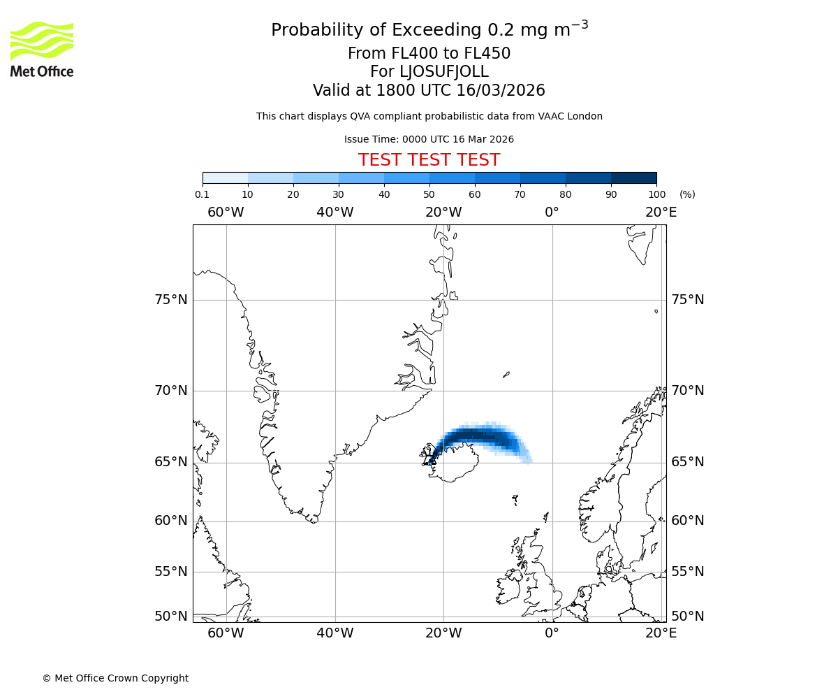 Quantitative Volcanic Ash charts (QVA) are produced in accordance with International Civil Aviation Organization (ICAO) Annex 3 requirements and are provided as well as the London Volcanic Ash Advisory Graphics (VAG) and Advisories (VAA). The lowest QVA threshold (0.2 mg/m³) matches to the areas depicted in the VAA and VAG. Both expected ash concentration and probabilistic forecast information is provided in the chart viewer below for eruptions occurring in the London Volcanic Ash Advisory Centre (VAAC) area of responsibility.