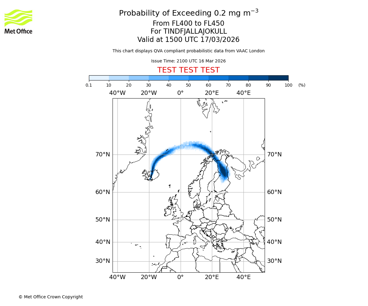 Quantitative Volcanic Ash charts (QVA) are produced in accordance with International Civil Aviation Organization (ICAO) Annex 3 requirements and are provided as well as the London Volcanic Ash Advisory Graphics (VAG) and Advisories (VAA). The lowest QVA threshold (0.2 mg/m³) matches to the areas depicted in the VAA and VAG. Both expected ash concentration and probabilistic forecast information is provided in the chart viewer below for eruptions occurring in the London Volcanic Ash Advisory Centre (VAAC) area of responsibility.