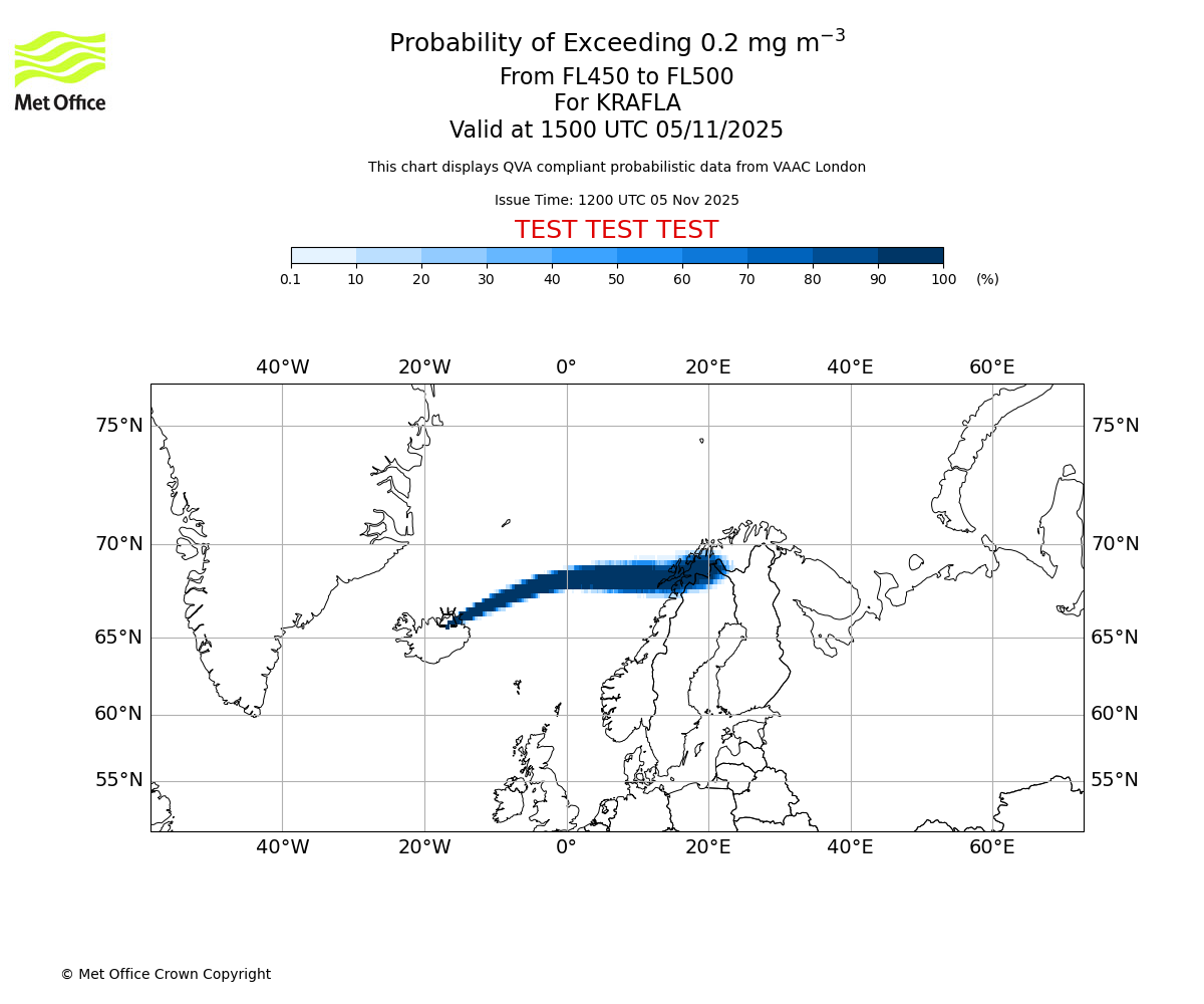 In accordance with ICAO Annex 3, Amendment 82 VAAC London will provide operational QVA forecasts from 27 November 2025 and these will be made available via a VAAC London QVA API information service. These charts are currently provided for test and evaluation purposes (not for operational use) until the introduction of the operational service.
