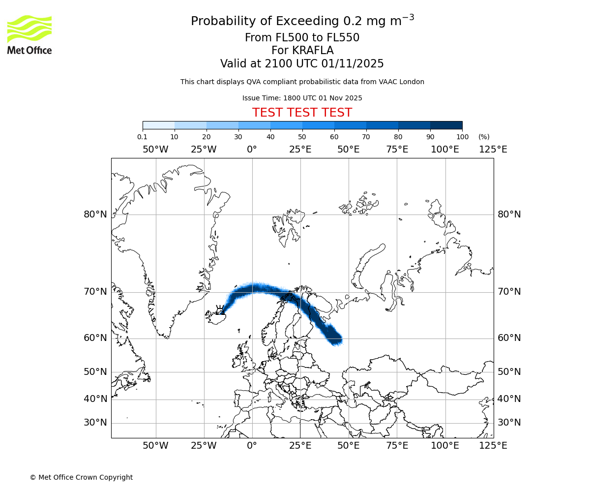 In accordance with ICAO Annex 3, Amendment 82 VAAC London will provide operational QVA forecasts from 27 November 2025 and these will be made available via a VAAC London QVA API information service. These charts are currently provided for test and evaluation purposes (not for operational use) until the introduction of the operational service.