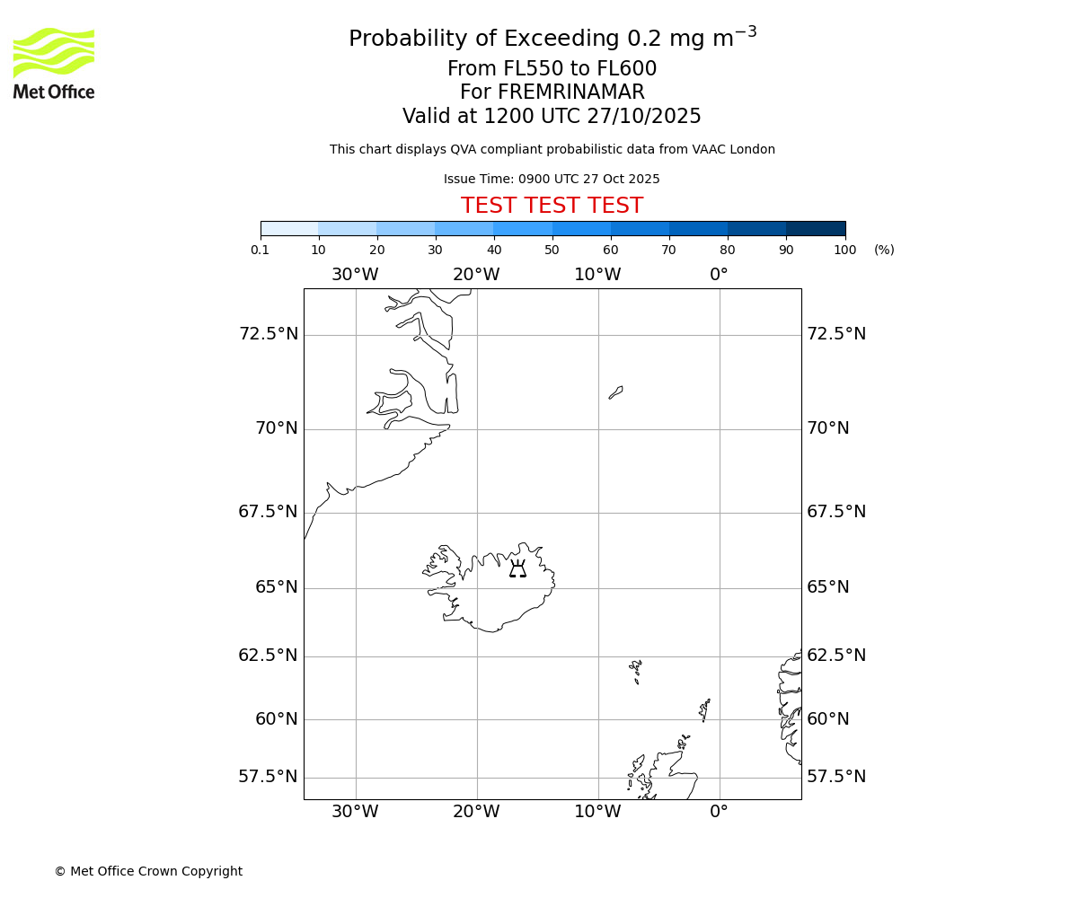 In accordance with ICAO Annex 3, Amendment 82 VAAC London will provide operational QVA forecasts from 27 November 2025 and these will be made available via a VAAC London QVA API information service. These charts are currently provided for test and evaluation purposes (not for operational use) until the introduction of the operational service.