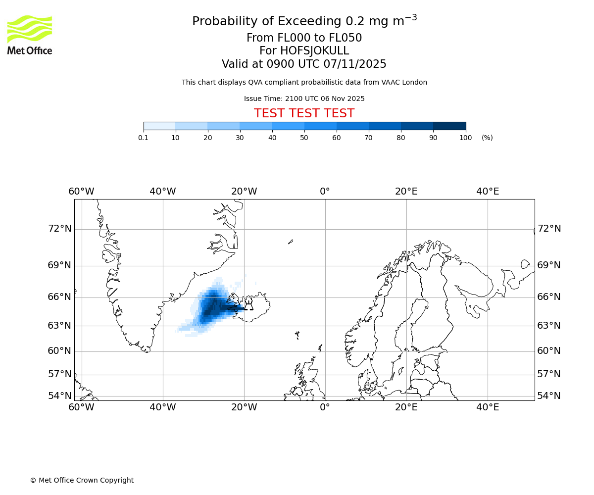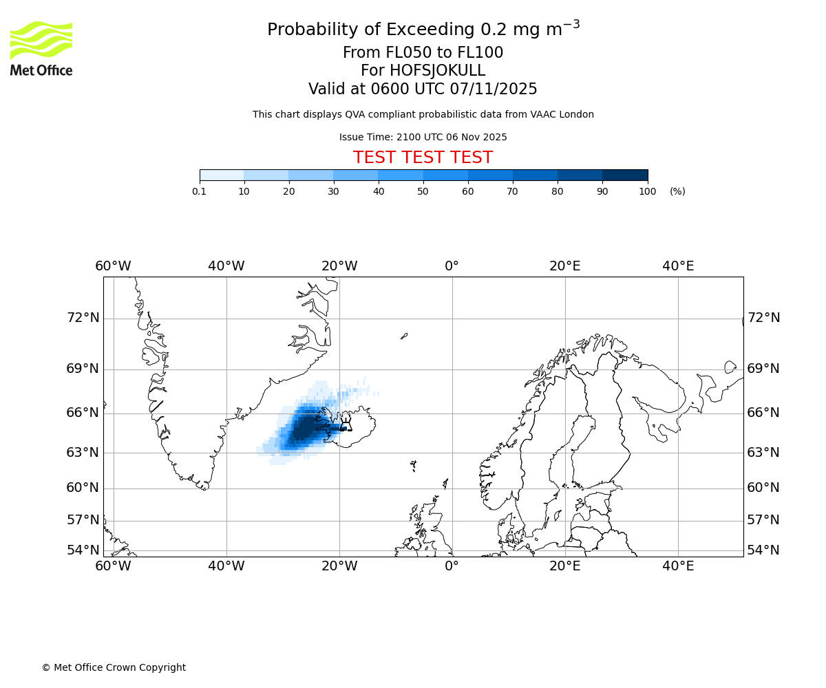 In accordance with ICAO Annex 3, Amendment 82 VAAC London will provide operational QVA forecasts from 27 November 2025 and these will be made available via a VAAC London QVA API information service. These charts are currently provided for test and evaluation purposes (not for operational use) until the introduction of the operational service.