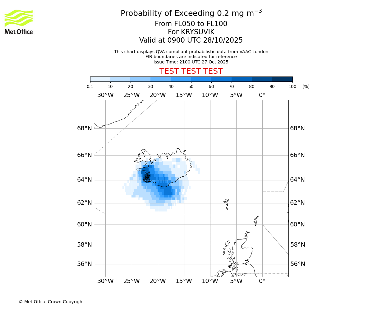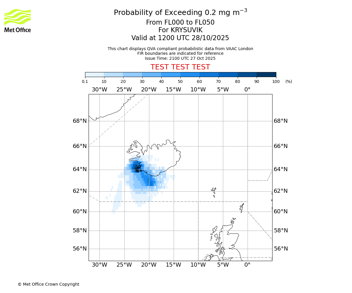 In accordance with ICAO Annex 3, Amendment 82 VAAC London will provide operational QVA forecasts from 27 November 2025 and these will be made available via a VAAC London QVA API information service. These charts are currently provided for test and evaluation purposes (not for operational use) until the introduction of the operational service.