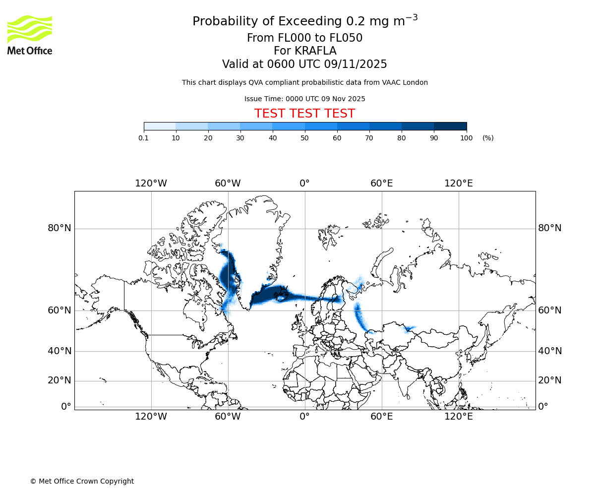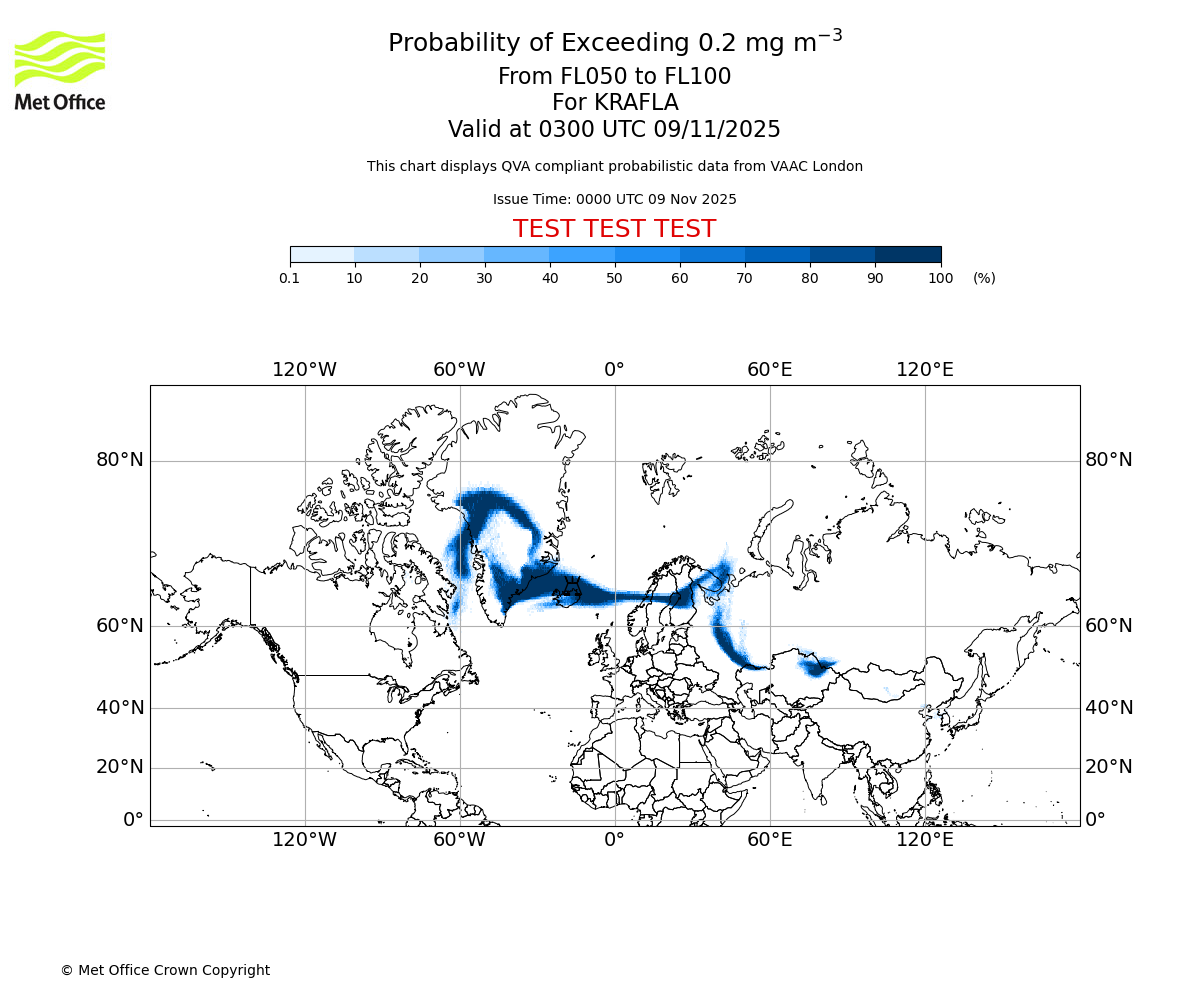 In accordance with ICAO Annex 3, Amendment 82 VAAC London will provide operational QVA forecasts from 27 November 2025 and these will be made available via a VAAC London QVA API information service. These charts are currently provided for test and evaluation purposes (not for operational use) until the introduction of the operational service.