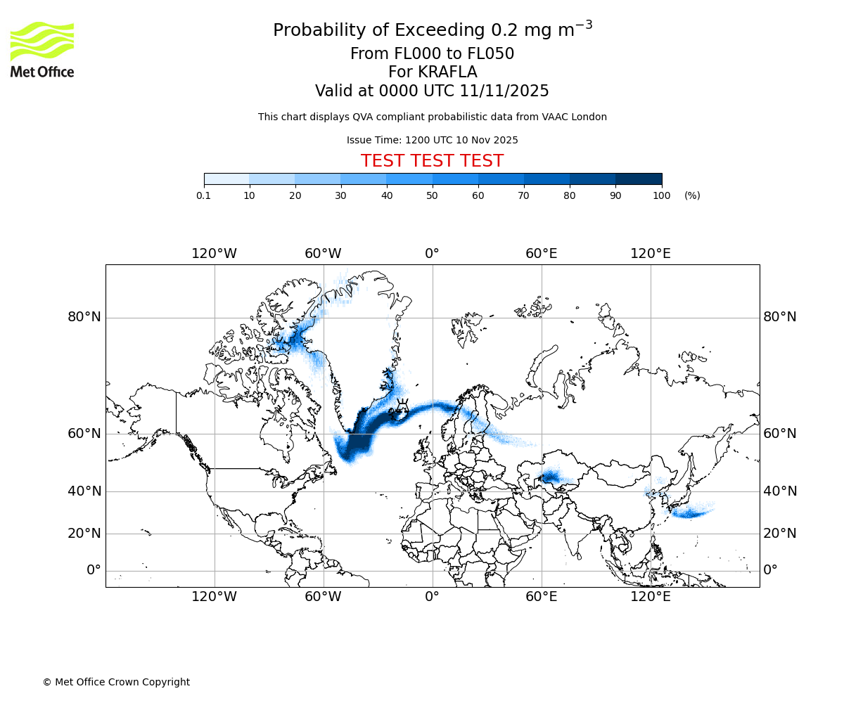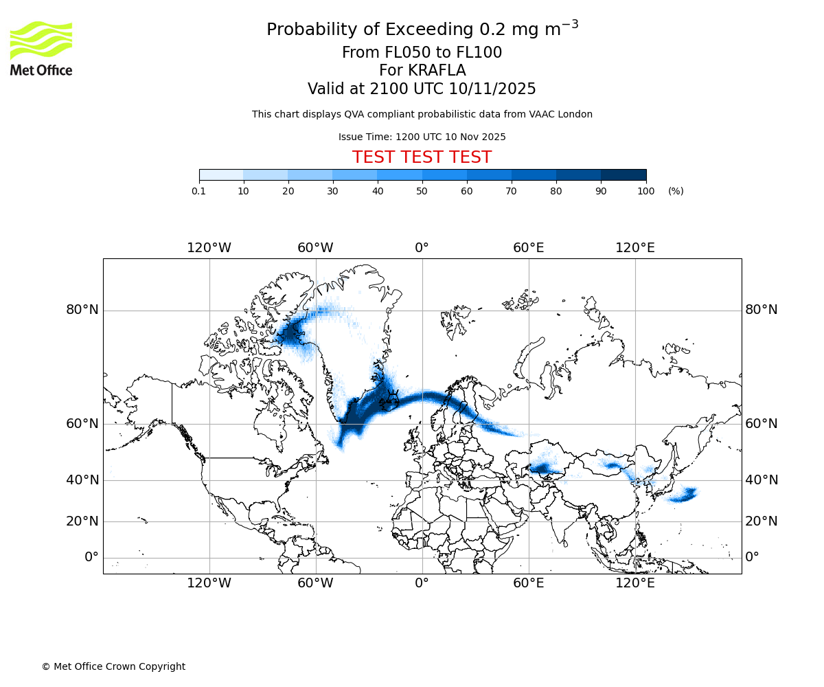 In accordance with ICAO Annex 3, Amendment 82 VAAC London will provide operational QVA forecasts from 27 November 2025 and these will be made available via a VAAC London QVA API information service. These charts are currently provided for test and evaluation purposes (not for operational use) until the introduction of the operational service.