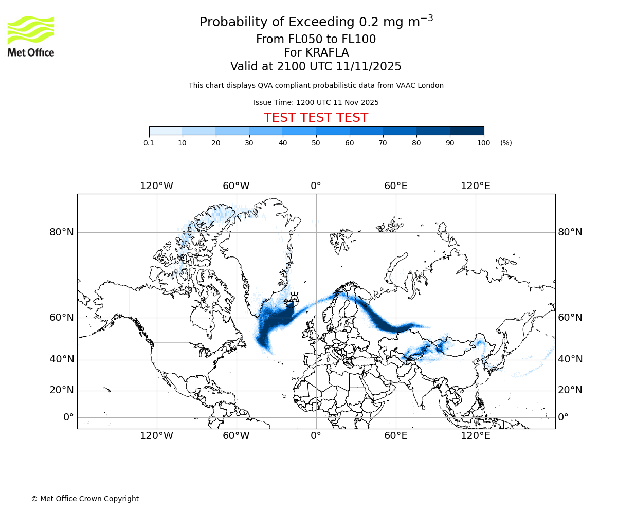 In accordance with ICAO Annex 3, Amendment 82 VAAC London will provide operational QVA forecasts from 27 November 2025 and these will be made available via a VAAC London QVA API information service. These charts are currently provided for test and evaluation purposes (not for operational use) until the introduction of the operational service.