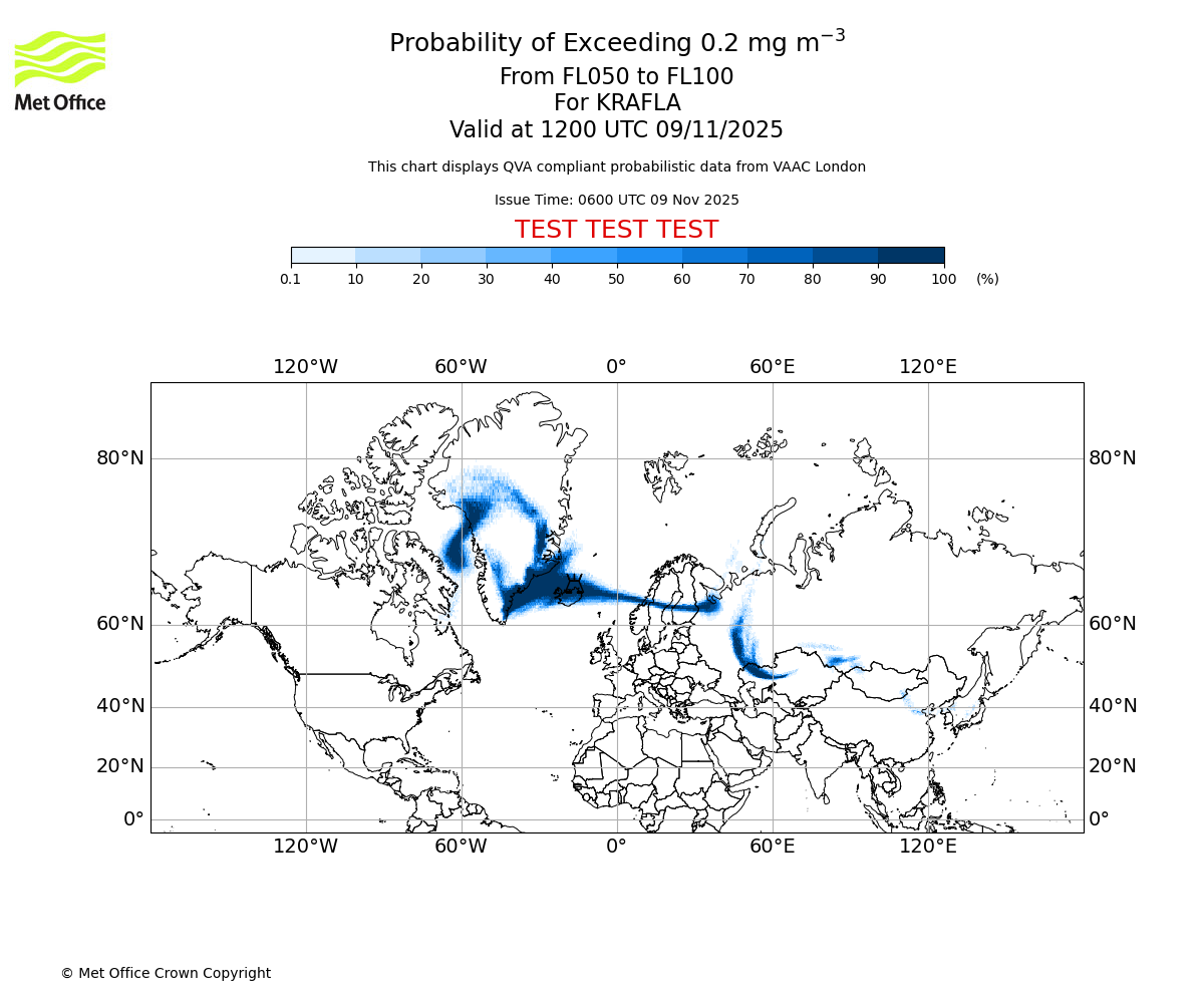 In accordance with ICAO Annex 3, Amendment 82 VAAC London will provide operational QVA forecasts from 27 November 2025 and these will be made available via a VAAC London QVA API information service. These charts are currently provided for test and evaluation purposes (not for operational use) until the introduction of the operational service.
