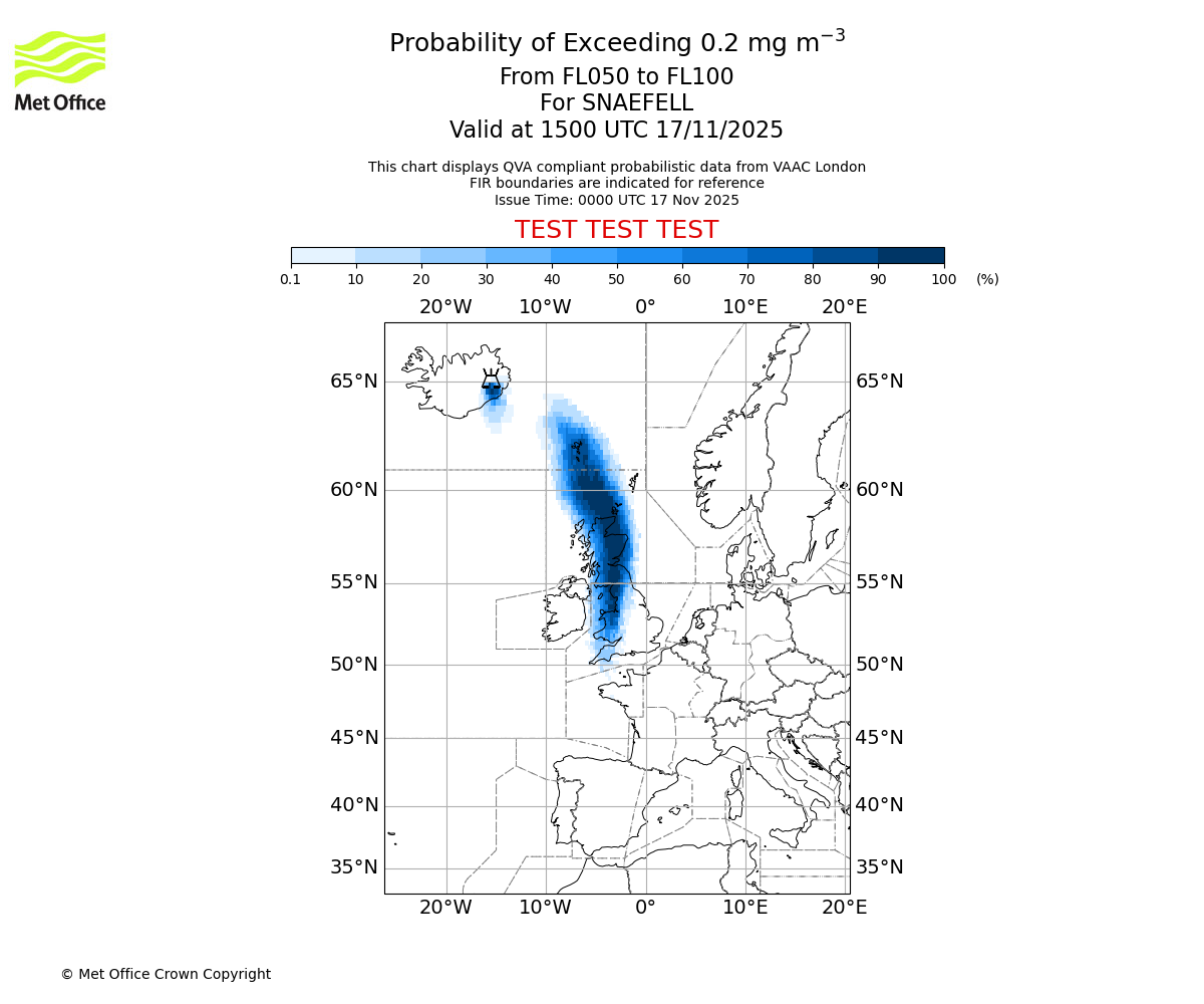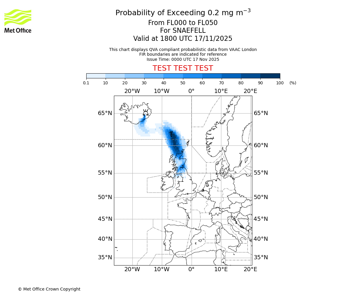 In accordance with ICAO Annex 3, Amendment 82 VAAC London will provide operational QVA forecasts from 27 November 2025 and these will be made available via a VAAC London QVA API information service. These charts are currently provided for test and evaluation purposes (not for operational use) until the introduction of the operational service.