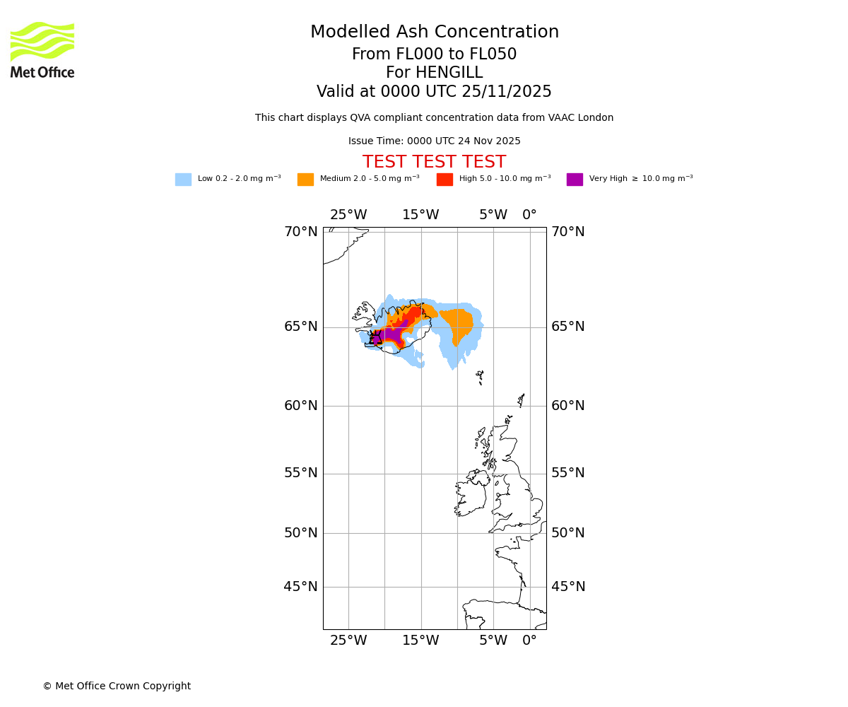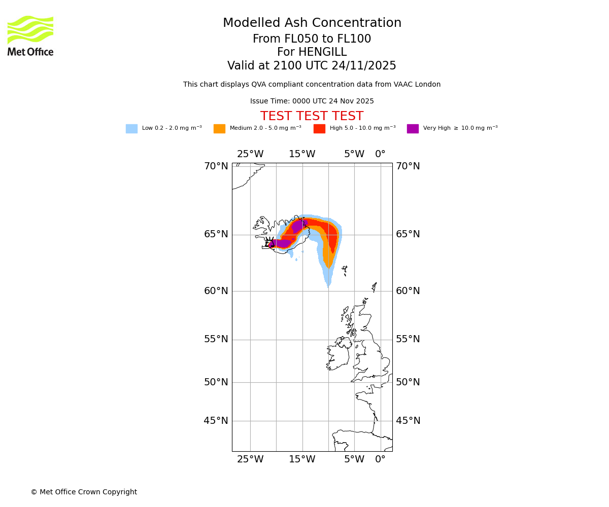 In accordance with ICAO Annex 3, Amendment 82 VAAC London will provide operational QVA forecasts from 27 November 2025 and these will be made available via a VAAC London QVA API information service. These charts are currently provided for test and evaluation purposes (not for operational use) until the introduction of the operational service.